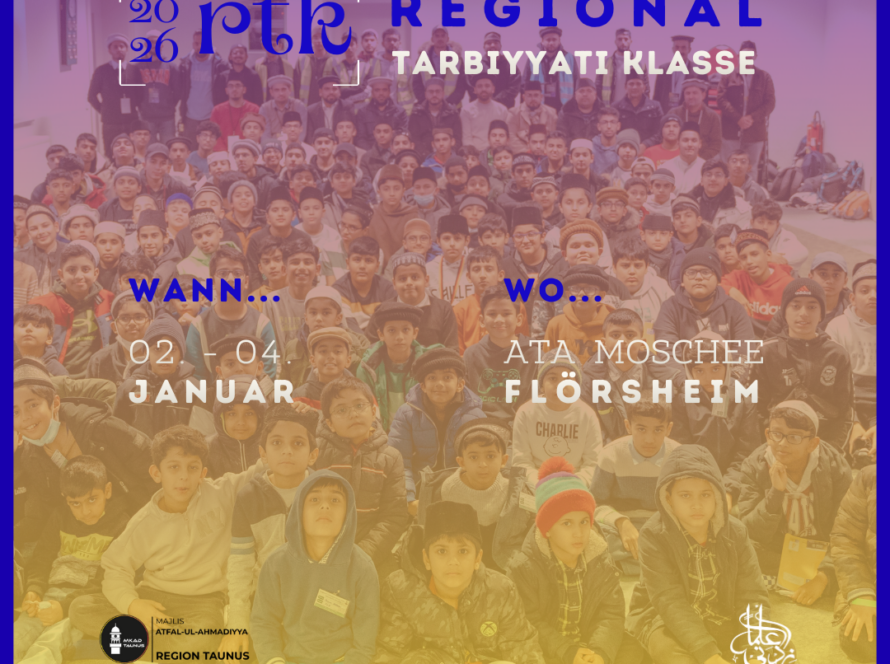 Die Regional Tarbiyyati Klasse 2026 wird insha'Allah vom 02. bis 04. Januar 2026 in Ata…