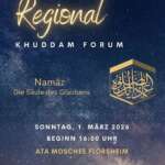Am 1. März 2026 um 16:00 Uhr findet in der Ataa Moschee in Flörsheim das Khuddam-Forum der Majlis Khuddam-ul-Ahmadiyya Region Taunus statt.Zu diesem besonderen Anlass sind alle Khuddam-Brüder herzlich eingeladen, zahlreich zu erscheinen und aktiv am Programm teilzunehmen. Das Forum bietet eine wichtige Plattform für Austausch, organisatorische Weiterentwicklung sowie spirituelle Stärkung innerhalb der Region.Neben relevanten regionalen Themen steht insbesondere die Förderung der Brüderlichkeit und des Engagements in der Jamaat im Mittelpunkt. Ziel ist es, gemeinsam Impulse zu setzen und die Arbeit der Majalis weiter zu stärken.